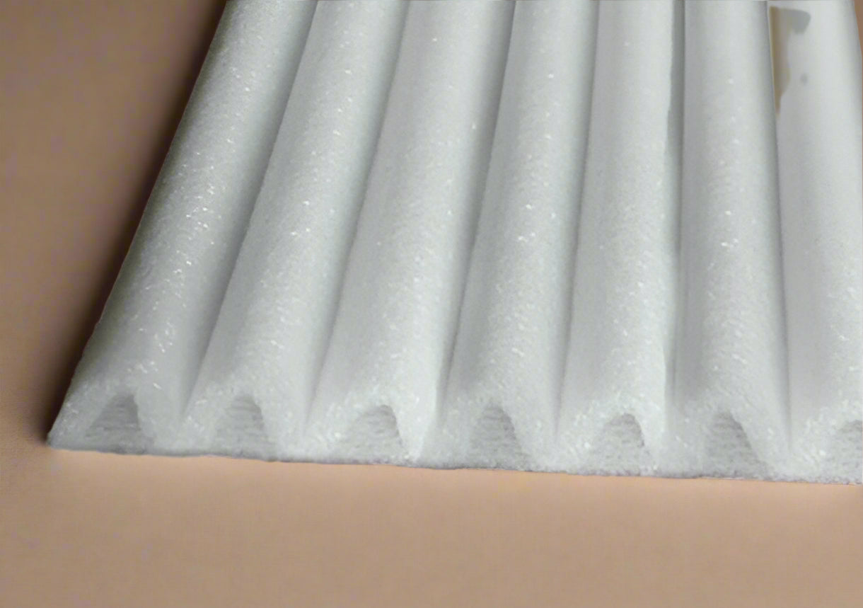 Golfschuim vellen met zeer dempende werking. Deze vellen worden bijv. gebruikt om zware wijnkisten te beschermen en standaard geleverd bij de grotere wijnkist verpakkingen. Ook te gebruiken om tussenschotten van wijnkisten te verstevigen.
